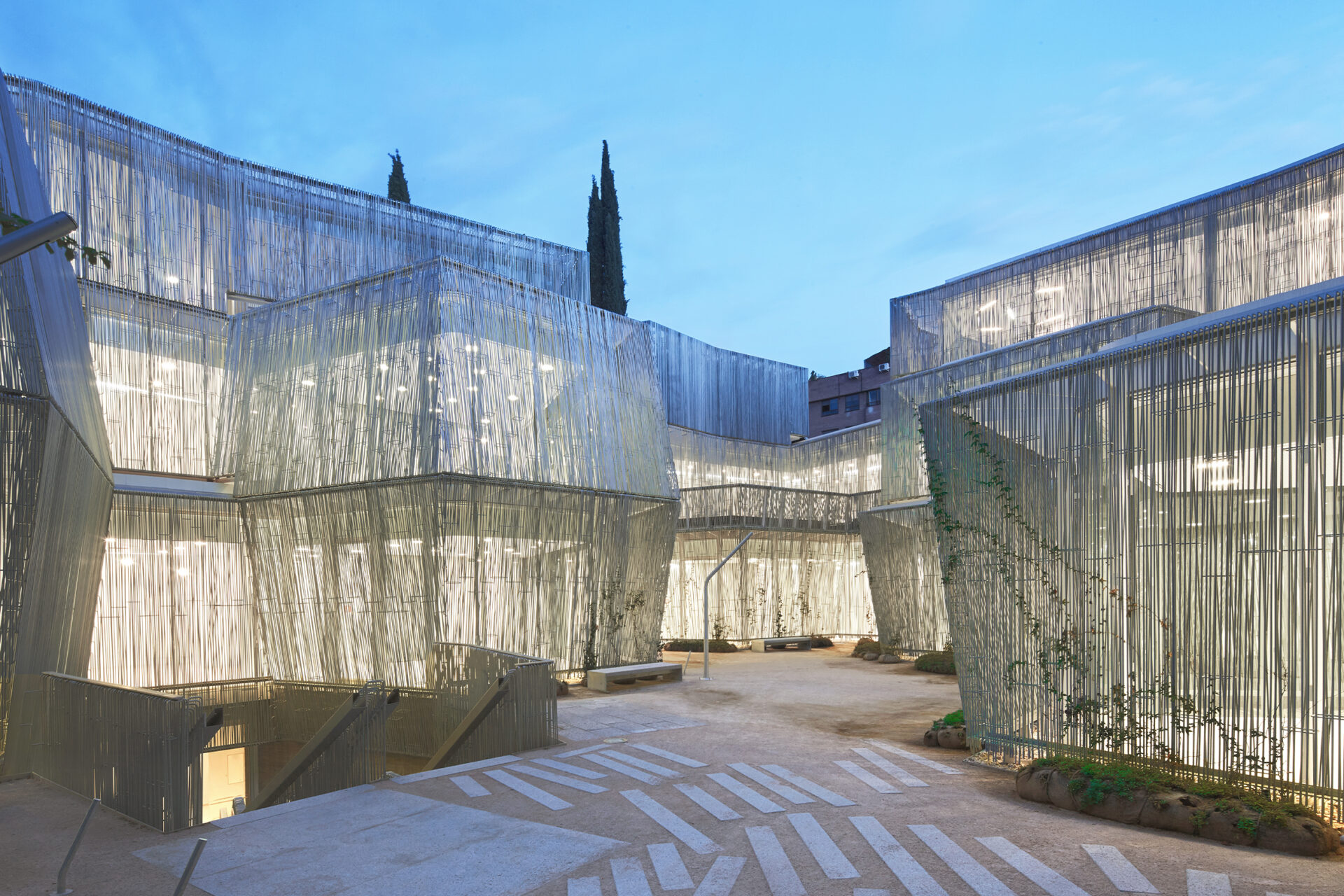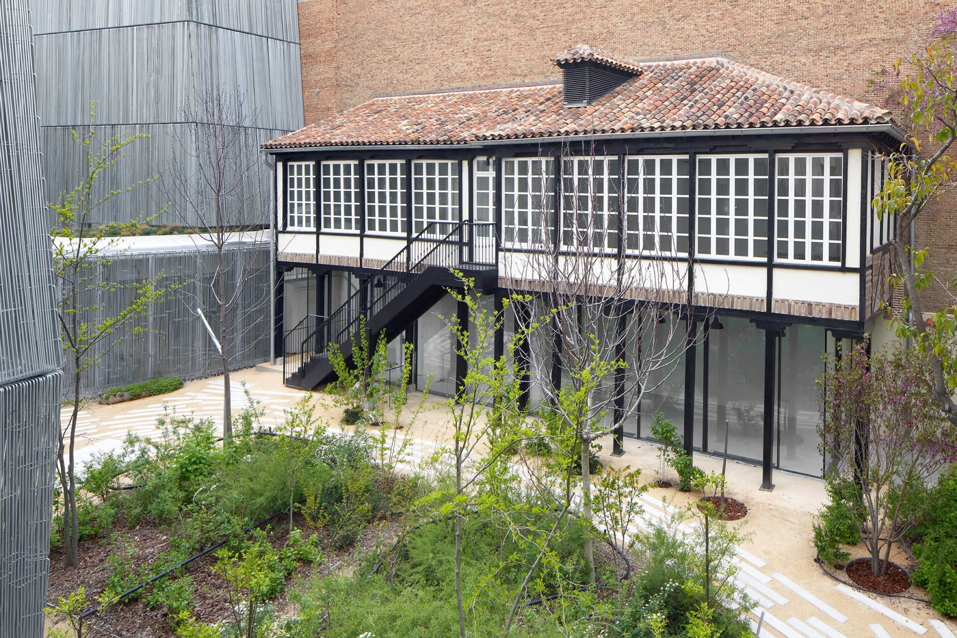 La entrada principal y el acceso a todos los edificios se realiza a través del jardín, que es fundamental como elemento articulador del resto de los espacios y como lugar de encuentro y reunión.